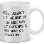 Tasse mit Spruch: Lieber Schwager, Egal wie hart das Leben noch wird, zum Glück hast du keine hässliche Schwägerin
